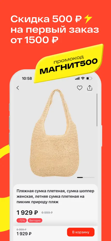 Откройте для себя новый уровень онлайн-шопинга с приложением «Магнит Маркет»! Это современная торговая площадка, где вы найдете тысячи товаров российского и китайского производства с бесплатной доставкой всего за сутки. Покупайте легко и выгодно без лишних хлопот и долгого ожидания посылок. Это отличный вариант, если вам нужно удобное решение на Android и iOS.
